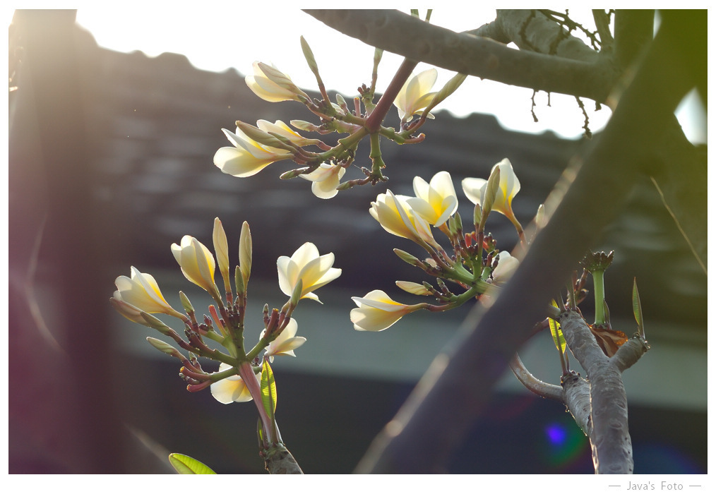 昨天傍晚發現小火車站前的雞蛋花開花了