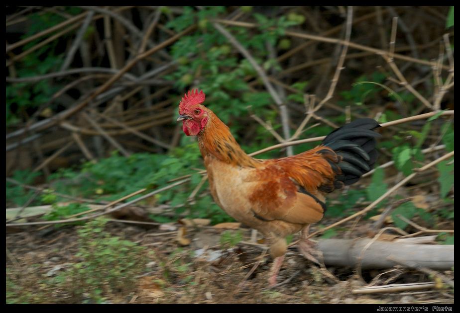 附近有人養雞,在一旁跑來跑去的