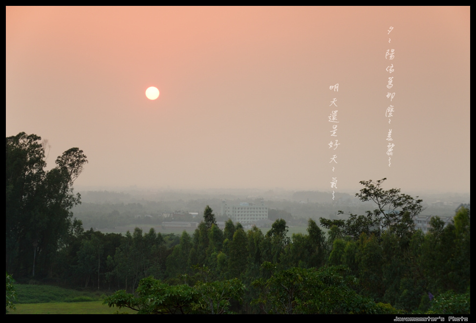 傍晚的天空,是橘色的 風,是和煦而舒服的 連騎著車往返於學校 都像是出外郊遊兜風一樣 嗯~好棒